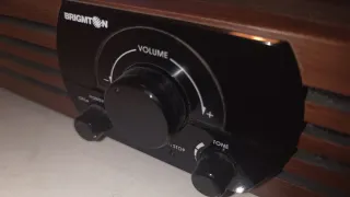 Reproductor de vinilo con radio, con un diseño clásico en madera. - Acabado en madera oscura. - Incluye altavoces integrados. No funciona el reproductor de CD SÓLO PARA RECOGER