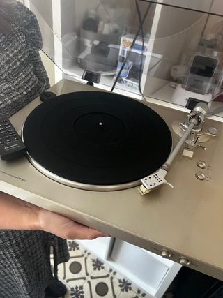 Tocadiscos Pioneer PL-X77Z. Funciona perfectamente, el unico fallo es que tiene la tapa rota, pero no afecta a su funcionamiento. Incluyo en el precio el amplificador donde puedes enchufar el tocadiscos, el reproductor de cintas que no sé si funciona y el reproductor de radio. Posibilidad de comprar altavoces Bose 201 serie IV (ver mi perfil)