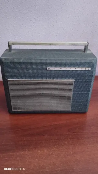 Este tocadiscos vintage De Wald 545 es una pieza de los años 60 con un diseño clásico. - Carcasa en tono azul. - Detalles plateados. - Asa superior para transporte.