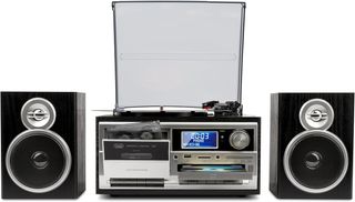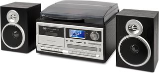 Sistema de tocadiscos estéreo Trevi TT 1072 Dab. - Diseño moderno en color negro y plateado. - Incluye altavoces. - Funcionalidad DAB.