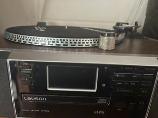 Tocadiscos Lauson CL142 con diseño moderno. LAUSON CL142 tocadiscos con función grabación a USB con bluetooth. - Plato giratorio. - Tapa protectora. - Panel frontal con pantalla y controles. - Lector de CD/MP3. - Radio FM. - Función grabación a USB. - Conectividad Bluetooth. Estado como nuevo, usado solo un par de veces.