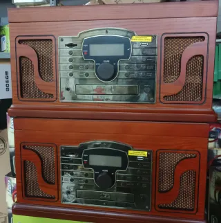Tocadiscos, CD, USB, Radio, Cassette y tarjeta SD. Marca Lauson. Altavoces incorporados y salida para altavoces externos. Mando a distancia. En perfecto estado, prácticamente sin usar - Acabado en madera. - Detalles en color dorado. - Altavoces integrados. Acepto ofertas