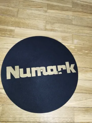Slipmat de la marca Numark con un diseño llamativo. - Color morado con detalles en dorado. - Material de calidad para DJs.