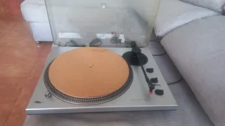 plato giradiscos de alta gama marantz modelo TT 4200, de tracción directa, en perfecto estado de funcionamiento. Completamente automático tanto para disco grande como para disco pequeño; dispone de pitch (ajuste de velocidad) independiente para ambas velocidades y estroboscopio luminoso. Elevación y bajada del brazo suaves. Con centrador para discos pequeños original. Aguja Audio technica, buen estado. A nivel estético el dispositivo se encuentra bien, pero la capota transparente tiene alguna marca o neblina, nada importante. Se garantiza un embalaje profesional. envío a península por 9 euros más. Thorens project nad technics