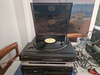 Equipo de música en estado perfecto.. - Incluye tocadiscos de vinilo, radio y casete. - Sistema de sonido estéreo. - Diseño clásico y elegante.
