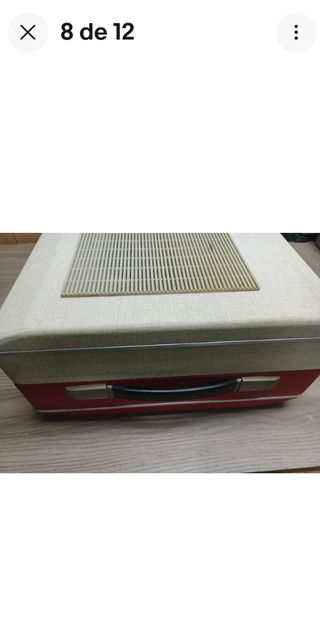 Tocadiscos forma maleta, muy comodo transportar, discos grandes y pequeños, se olle perfectamente.