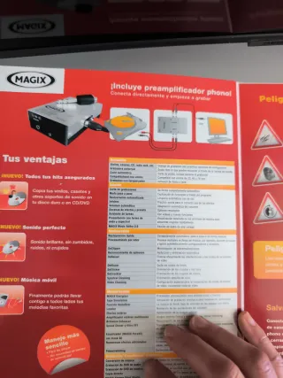 Software MAGIX para digitalizar tus vinilos y casetes. Conserva tus recuerdos musicales en formato digital. - Incluye preamplificador phone. - Conecta tus tocadiscos directamente con PC. - Copia vinilos, casetes, cintas y mucho más. - Guarda en disco duro, CD o DVD.