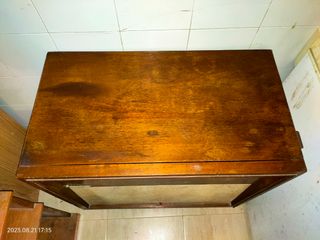 Mueble auxiliar de madera con diseño clásico. - Ideal para colocar un tocadiscos. - Cuenta con cajones y compartimentos de almacenaje. - Tiradores dorados.