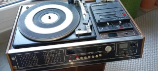 Tocadiscos de vinilos Faro con reproductor de casetes integrado. Un equipo de sonido clásico. - Reproductor de vinilos. - Reproductor de casetes. - Sintonizador de radio AM/FM.