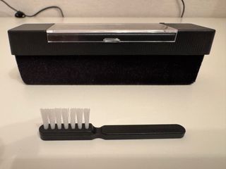 Cepillo diseñado para la limpieza y el mantenimiento de discos de vinilo. Ideal para eliminar polvo y pequeñas partículas antes y después de cada reproducción, ayudando a conservar el sonido y alargar la vida del disco y de la aguja. Cuenta con superficie de limpieza suave y uniforme, adecuada para el cuidado del vinilo sin dañarlo. Incluye funda rígida con cierre, que protege el cepillo cuando no se utiliza y permite guardarlo de forma segura. En el interior de la funda se incluye además un cepillo blanco más pequeño, pensado para una limpieza más precisa y para el mantenimiento de la aguja. estuche cepillo limpieza organizador