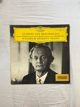 VENTA URGENTE ACEPTO OFERTAS Vinilo LP de Ludwig van Beethoven interpretado por Wilhelm Kempff (piano). Incluye las sonatas más conocidas: - Sonata nº 8 “Patética” (Op. 13) - Sonata nº 14 “Claro de Luna” (Op. 27 nº 2) - Sonata nº 23 “Appassionata” (Op. 57) Sello: Deutsche Grammophon Formato: Stereo IMPORTANTE: No puedo comprobar cómo suena porque no tengo tocadiscos (lo compré de segunda mano). La carpeta tiene alguna mancha de pintura y restos de blue tac visibles en la parte exterior. Se vende tal cual aparece en las fotos. Ideal para coleccionistas o amantes de la música clásica. Precio ajustado por no estar probado.