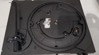 Tocadiscos con un diseño clásico y elegante. - Acabado en plata y negro. - Parte superior brillante. Funciona pero le falta la aguja y los altavoces por heso lo vendo para piezas
