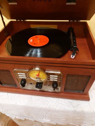 Preciosa tocadiscos de la marca iNVES. Se encuentra en muy buen estado. - Reproduce vinilos. - Diseño retro en madera marrón. - Incluye aguja.