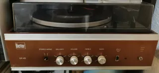 Tocadiscos Bettor EF-43 con diseño clásico, mas 2 altavoces originales - Controles de STEREO-MONO, BALANCE, VOLUME, TREBLE y BASS. - Selector de entrada PHONO/AUX. - Unidad de estado sólido. Está para reparar