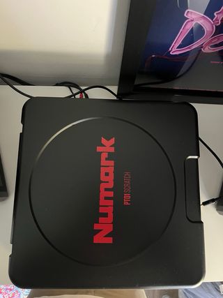 Tocadiscos portátil Numark PT01 Scratch. - incluye cable de corriente - en perfecto funcionamiento tanto el plato como la aguja - Diseño compacto y ligero. - Acabado en negro con detalles en rojo.