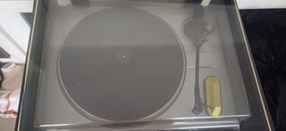 Tocadiscos en excelente estado, con muy poco uso. - Diseño elegante en madera y negro. - Tapa protectora transparente.