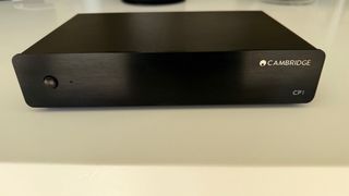 Pre-amplificador phono Cambridge CP1 en acabado negro. Entrego con tramsformador 10/220 El CP1 destaca por utilizar componentes discretos en lugar de circuitos integrados, lo que minimiza la distorsión y el ruido en la fase de amplificación de tu tocadiscos. Rendimiento de Audio • Tipo de Cápsula: Exclusivo para Moving Magnet (MM). • Ganancia (@ 1 kHz): 39 dB. • Salida Nominal: 300 mV. • Sensibilidad para Salida Nominal: 3.35 mV. • Distorsión Armónica Total (THD): < 0.009% (entre 20 Hz y 20 kHz). • Precisión de la Curva RIAA: < +/- 0.65 dB (entre 25 Hz y 20 kHz). • Relación Señal/Ruido (SNR):
