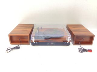 Apenas utilizado y como nuevo, este tocadiscos estéreo de 3 velocidades 33/45/78 RPM, consta de receptor de bluetooth, puerto usb para reproduccion y decodificacion y lector de tarjetas SD Conmutador de auto-apagado Tiene dos altavoces integrados Bluetooth con tablet y smartphone 2 altavoces incorporados Modelo: MT201BTG ⚠️Contactame para mas detalles⚠️