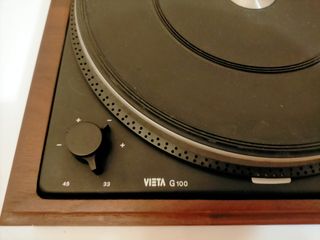 Lo de la foto no es un TOCADISCOS NI NUNCA LO FUE. Es un PLATO o GIRADISCOS. El hecho de que la mayoría lo nombre así, no quiere decir que sea lo correcto. No encontrará en los últimos 50 años un folleto de una marca decente que lo haya nombrado..."TOCADISCOS", sencillamente PORQUE NO LO ES. El tocadiscos es el antiguo, el que tiene ampli incorporado (el de la foto 2)