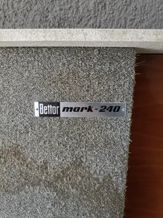 Tocadiscos Bettor Mark 240 con diseño retro. - Plato giratorio. - Controles de graves, agudos, volumen y balance. - Brazo de lectura. - Asa para transporte. Necesitaría una puesta a punto.
