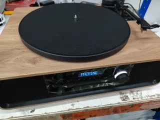 Tocadiscos CD radio probasic vintage funciona radio y CD tocadiscos arranca pero no acaba de ponerse en marcha sería para alguien que le diera un repaso al aparato en general mucho tiempo parado es muy buena marca probasic mira el precio en wallapop y verás la diferencia creo que 70 € estaría bien lo he rebajado 50 € y ahora lo pongo a 40 para alguien que le interese