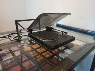 Tocadiscos Sony PS-J10 en color negro. Funciona correctamente. - Aguja nueva instalada. - Diseño elegante y compacto. A correa, nueva también.Mirar mi perfil,hago pack con el amplificador AKAI