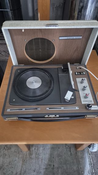 Tocadiscos portátil modelo Conver 1000 de estilo vintage. Ideal para los amantes de la música en vinilo. - Diseño tipo maleta con asa. - Altavoz integrado. - Controles de volumen y balance.