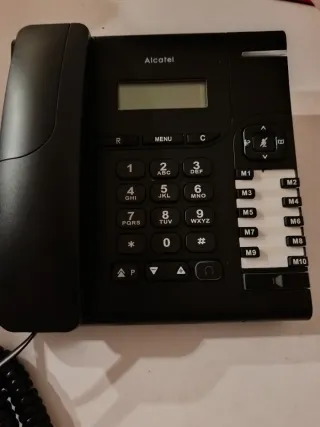 Teléfono fijo Alcatel en color negro. - Diseño moderno y funcional. - Teclado numérico completo. - Pantalla LCD. - Botones de acceso rápido M1-M10.