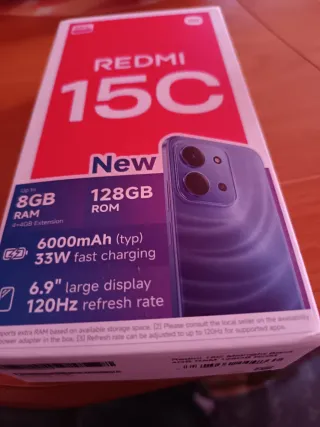 Teléfono móvil Redmi 15C sin abrir, con gran capacidad de almacenamiento. - 128 GB de ROM - Hasta 8 GB de RAM (con extensión de 4+4 GB) - Batería de 6000 mAh (típica) - Carga rápida de 33W - Pantalla grande de 6.9 pulgadas - Tasa de refresco de 120 Hz
