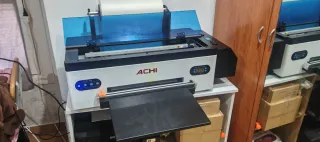 Impresora DTF ACHI en color blanco. Ideal para transferencias de calor. - Incluye rollo de película. - Panel de control digital. - horno - tanques de colo por la mitad, color blanco lleno y un bote por separado Cabezal de impresión de Epson R1390 Lista para ponerla en marcha