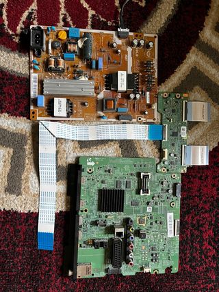 Conjunto de placas electrónicas para televisión, repuestos originales. - Placa principal (main board). - Placa de fuente de alimentación (power supply board). - Cable flex de conexión. Conjunto de placas electrónicas originales para televisor. Incluye placa principal (main board), fuente de alimentación (power supply), placa T-Con y cables flex. Piezas retiradas de un televisor, se venden como repuestos o para reparación. Estado: usadas, sin probar. Ideal para técnicos, reparación de TV o como piezas de recambio. Se vende todo junto o por separado. Lo que se ve en las fotos es exactamente lo que se entrega.