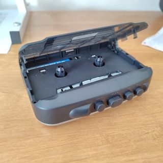 Reproductor de radio AM/FM y cassette de la marca Bluesky. Diseño compacto y portátil. - Sintonizador AM/FM. - Reproductor de cassette. - Botones de control de reproducción.