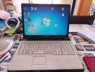 Ordenador portátil de la marca Toshiba. Su diseño es elegante y moderno. - Color negro con detalles multicolor. - Pantalla de alta definición.