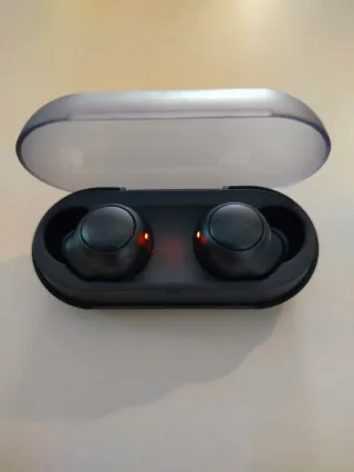 Auriculares inalámbricos Sony Air Pads en color negro. - 10 h. Autonomía. - Bluetooth. - Emparejamiento sencillo. - Diseño ergonómico. - Indicadores LED de carga. - Auriculares 🧲 imantados en su posición en la caja!! 😯💯 - Cable original de carga, incluido!!✅ - 2 Juegos de almohadillas de recambio, incluidas!! ✅ - Estuche de carga, incluido!!✅ * Nuevos en su caja!! 🎁