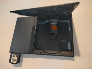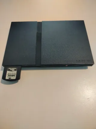 Consola PlayStation 2 en color negro. Incluye un Memory Card de 16MB. - Diseño elegante y compacto. - Puerto para Memory Card. - Memory Card, incluida.✅ - Cables de alimentación y conectores TV, incluidos.✅ *Tiene un trocito de plástico roto en la tapa que no influye en su funcionamiento.
