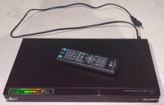 Reproductor de DVD y CD de la marca LG. Permite la reproducción de contenido a través de USB y cuenta con salida HDMI para una mejor calidad de imagen. CARACTERÍSTICAS: - Compatible con Full HD Upscaling. - Incluye puerto USB. - Compatible con xVid. - Compatible con Windows Media. - Incluye mando a distancia. - Elando puede controlar una TV LG. MEDIDAS: - Anchura: 36 cm. - Fondo: 20 cm. - Altura: 5 cm. Se entrega en el BlueSpace de Torrejón.