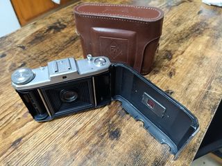 Vendo cámara fotográfica clásica Agfa Isolette II, fabricada en Alemania a finales de los años 40. Cámara plegable de formato medio (película 120), muy apreciada por coleccionistas y fotografía analógica. 📷 Objetivo Agfa Agnar 75mm f/4.5 📷 Obturador Prontor (B, 1/25–1/200) 📷 Formato 6×6 📷 Fuelle en buen estado 📷 Enfoque por escala 📷 Incluye funda original Buen estado general para su edad. Fuelle aparentemente sano y óptica limpia a simple vista. No probada con carrete (se vende como cámara clásica/colección).