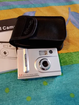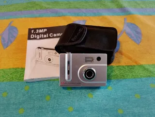 Cámara de fotos digital compacta de 1.3 megapíxeles. Incluye su funda protectora y manual. Cámara pequeña y ligera, ideal para capturar momentos especiales. Incluye funda protectora y manual. Poco uso. Se guardó funcionando correctamente. Ahora sin probar Año 2007 - Cámara de 1.3 Megapíxeles. - Color plateado. - Funda de transporte negra marca Werlisa Sport. - Manual de instrucciones. - Funciona con pilas AAA x3 y tarjeta SD extraíble (no incluidas) - Sin Pantalla LCD: no tiene pantalla LCD trasera para previsualizar o ver las fotos.