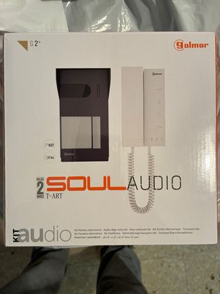 Kit de portero electrónico Golmar Soul Audio. - Modelo G2+. - Sistema de 2 hilos. - Protección IP44. - Acabado en negro y blanco.