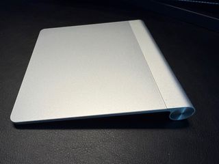 Trackpad de Apple en acabado plateado. Su diseño elegante se adapta a cualquier espacio de trabajo. A pilas. La goma de abajo para el botón derecho se ha salido, pero funciona. - Superficie táctil amplia. - Perfil delgado y moderno.