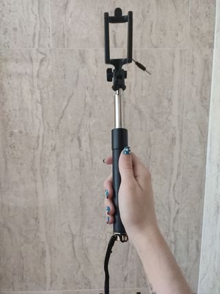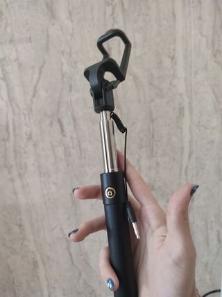 Tengo dos, ambos tienen un cable que se conecta al móvil y al darle al botón hace las fotos (se ve todo en las imágenes), tienen también una cuerda para aferrarlo a tu muñeca para más seguridad. Cualquier duda no dudéis en escribirme :)