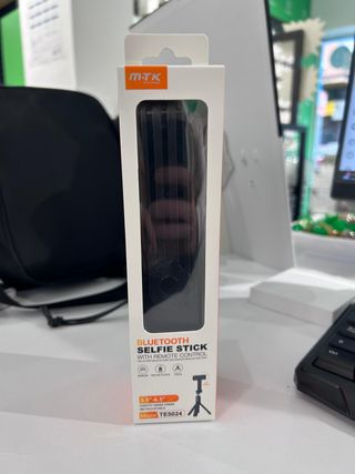 Práctico selfie stick con control remoto Bluetooth. - Compatible con teléfonos de 3.5 a 6.5. - Longitud ajustable. - Incluye trípode. - Disponible en Blanco o Negro