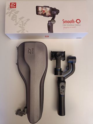 Gimbal Zhiyun Smooth Q. Estabilizador de 3 ejes para teléfonos móviles, con una capacidad de carga de 200 gramos y una autonomía de hasta 12 horas. Controla gracias a su conexión Bluetooth y la app ZY Play el zoom de la cámara. Se vende con funda y caja original. En perfecto estado. solo se ha usado un par de veces