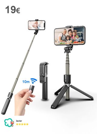 𝐄𝐧 𝐬𝐮 𝐜𝐚𝐣𝐚 𝐨𝐫𝐢𝐠𝐢𝐧𝐚𝐥: Palo de selfie metálico, con agarradera ajustable, cabezal basculante, trípode y mando a distancia por bluetooth que alcanza los 10 metros de distancia. Cabe en el bolsillo. ¡Lo tiene todo! Puedes recogerlo en Madrid o te lo envío a domicilio por solo 3,90 euros.