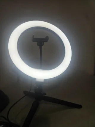 Aro de luz con trípode y soporte para móvil. Ideal para crear contenido o iluminar espacios. - Aro de luz LED. - Trípode ajustable. - Soporte flexible para smartphone. - Control de intensidad y modos de luz.