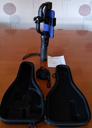 Gimbal para móvil en perfecto estado de uso, solo funciona en móviles 5G, cargador a través de usb graba imágenes en HD y 2K si el móvil lo acepta, funda transporte y correa no incluye movil