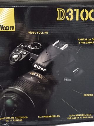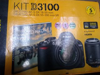 Kit D3100 Nikon original que incluye todo lo que traía la caja: bolsa,trípode,libro, instrucciones, dos objetivos y un flash de apoyo. La cámara va con su cargador y batería. Está todo muy nuevo en sus cajas, con facturas. No tiene casi uso. Perfecta para principiantes. El soporte de nivelación para el trípode está rajado, y el objetivo pequeño está como encasquillado de no utilitzarlo. Acepto cambios.