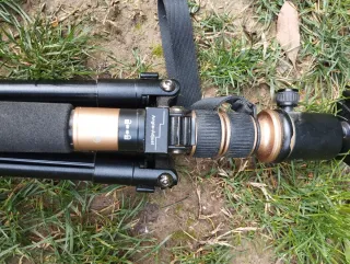 Trípode Profesional Gloxy GX-T6662A, aleación de aluminio, ligero y resistente. Peso 1.440 g pero ofrece una capacidad de carga de hasta 10 kg, ideal para grandes teleobjetivos. Patas con 4 secciones y cierre de pestañas. Rótula con plato de liberación rápida y sistema de nivelación de burbuja. Patas con goma antideslizante + puntas metálicas. Rosca universal estándar 1/4". Altura máxima 1.626 mm. Plegado solo tiene 56 cm, ideal para viajes. Incluye bolsa de transporte. La columna central del trípode es ajustable y reversible, para tomas a ras del suelo, ideal para macrofotografía. Está como nuevo, solo se usó en 4 ocasiones.