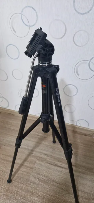 Trípode profesional Silver Shadow en color negro. Ideal para fotografía y video. - Construcción robusta y estable. - Patas ajustables para diferentes alturas. - Cabezal giratorio para un posicionamiento versátil.
