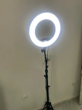 💡 Aro de luz de 10.2" con trípode alto (1,8 m) ideal para fotos, maquillaje o vídeos. 📱 Soporte universal con manguera flexible y cabezal giratorio: ajusta el ángulo perfecto para tu móvil o cámara. 🎨 3 modos de color (blanco, blanco cálido y amarillo cálido) + 10 niveles de brillo regulables del 10 % al 100 %. 🔆 120 LEDs de alta calidad (3200 K–6500 K), sin parpadeos ni reflejos, luz suave y profesional. 🔌 Alimentación USB, bajo consumo y compatible con portátil, powerbank o PC. 📦 En perfecto estado y en su caja original 💸 Precio negociable · 🚚 ¡Envío gratis a toda España!